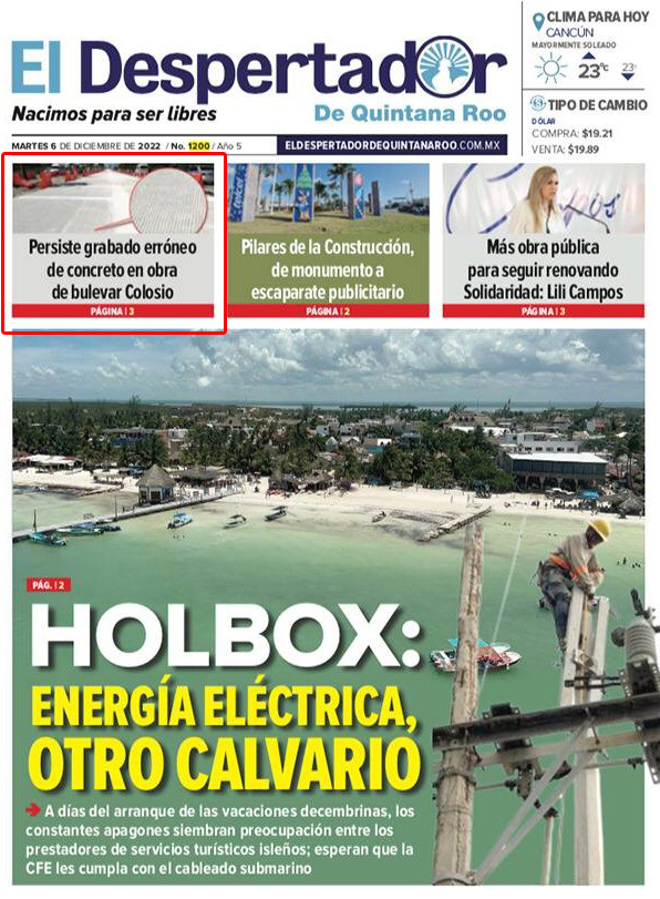 Desde que comenzaron los trabajos de rehabilitación, El Despertador de Quintana Roo ha documentado y denunciado de manera sistemática los problemas de la obra; las siguientes son algunas de las publicaciones relacionadas con el tema, al cual le hemos dedicado varias portadas de nuestras ediciones digitales diarias y semanales impresas: