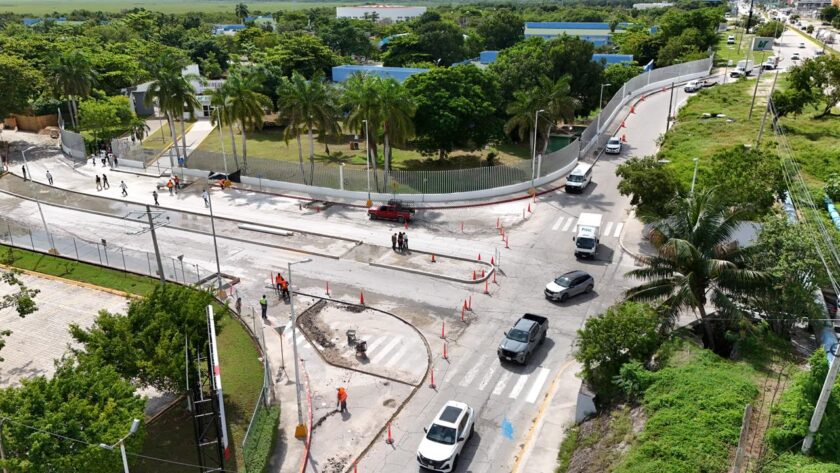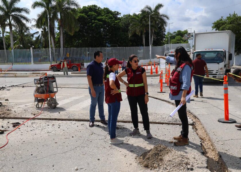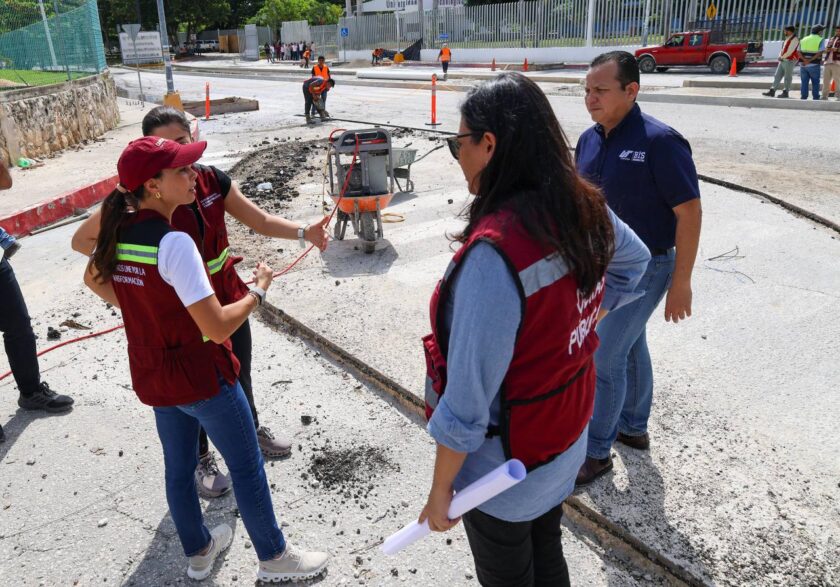 CANCÚN.– La presidenta municipal Ana Paty Peralta supervisó la obra del proyecto “Caminos Seguros”, destinada a mejorar la movilidad y la infraestructura urbana en el acceso a la Universidad Tecnológica de Cancún (UT) y La Salle, sobre el boulevard Luis Donaldo Colosio.