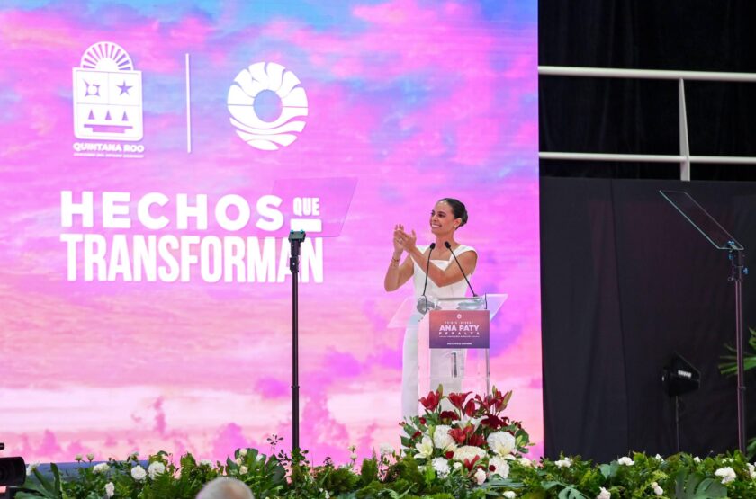 CANCÚN.- La presidenta municipal de Benito Juárez, Ana Paty Peralta, presentó su Primer Informe de Gobierno en el Poliforum “Benito Juárez”, donde expuso los avances alcanzados durante un año de gestión en áreas como bienestar social, regularización de la tierra, infraestructura, finanzas, cultura y seguridad.