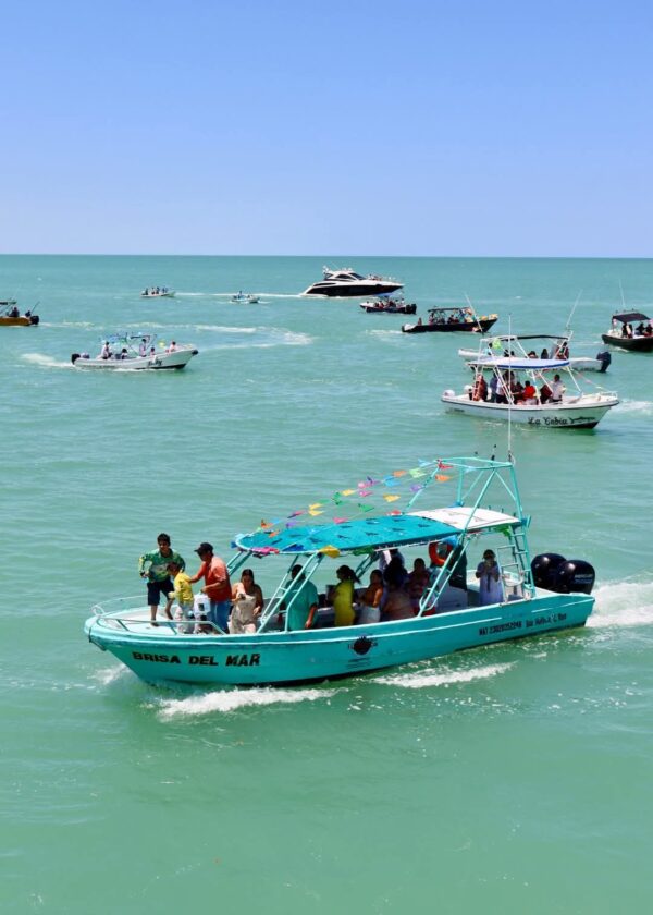 HOLBOX.- Cientos de feligreses participaron en la tradicional procesión en honor a San Pedro González Telmo, patrono de los pescadores en la isla de Holbox. La actividad consistió en un recorrido en altamar a bordo del ferry, acompañado por varias lanchas pesqueras y turísticas.