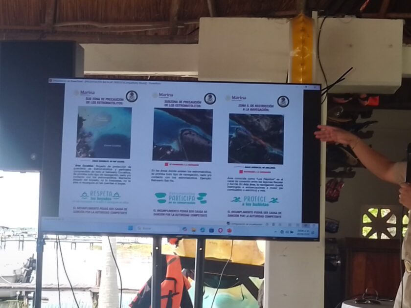 BACALAR.- El Capitán de Puerto de Chetumal, Román Bustos Gómez, expuso a la comunidad naviera de Bacalar la zonificación de que se establecerá para la navegación en Bacalar, antes de que sea publicada en el Diario Oficial de la Federación (DOF).