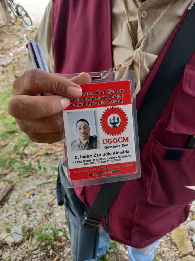El sujeto se identifica como Isidro Zamudio Almeida, con una credencial apócrifa de la Unión General de Obreros y Campesinos de México Mexico (UGOCM) en Quintana Roo y también dice ser inspector de la Secretaria de Ecología y Desarrollo Urbano de Cancún.