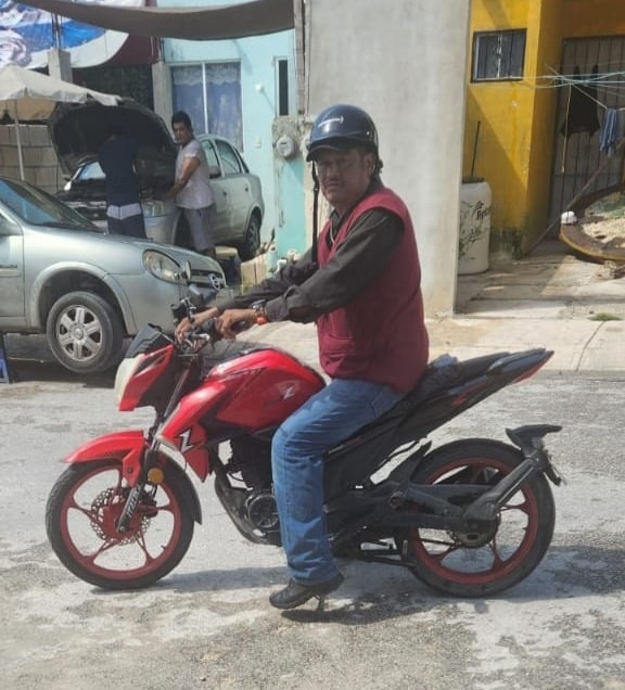 Este extorsionador se mueve en una motocicleta color roja marca Italika con placas 23AMZ9 y utiliza un chaleco de color beige y otro de color guinda, además usa gorra.