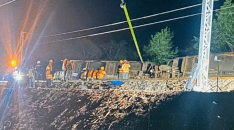 BACALAR.- Durante la madrugada del miércoles 29 de enero, un vagón que realiza el traslado de balasto para las obras del Tren Maya sufrió un descarrilamiento cerca de la estación de Limones, lo que generó la movilización de cuerpos de emergencia.