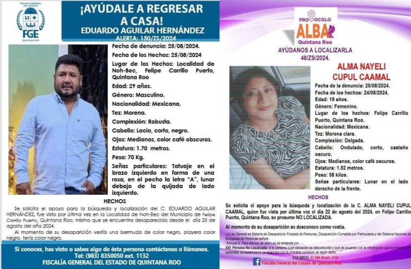 A esta búsqueda se suma la de Eduardo Aguilar Hernández, visto por última vez el 25 de agosto de 2024 en la localidad de Noh-Bec. Quienes tengan datos sobre el paradero de estas personas pueden comunicarse al número 983 83 5 0050 ext. 1132