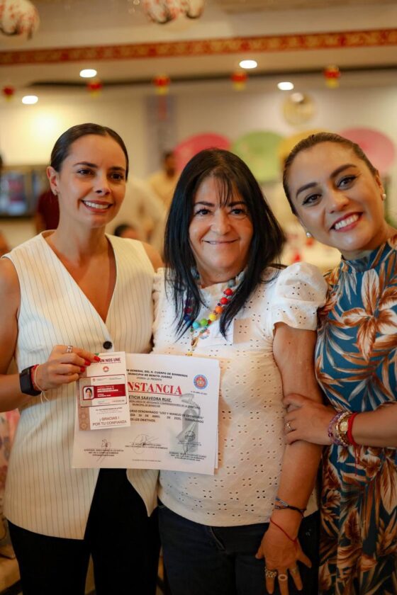CANCÚN.- La presidenta municipal Ana Paty Peralta entregó 79 credenciales y certificados a artesanos, artesanas y emprendedores que concluyeron capacitaciones en “Primeros Auxilios” y “Uso y Manejo de Extintores”, como parte de las acciones para fortalecer el desarrollo económico y la inclusión productiva en Cancún.