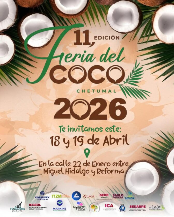 CHETUMAL.- La décima primera edición de la Feria del Coco se realizará este fin de semana en el auditorio de la Canaco, con la participación de alrededor de 50 productores, artesanos y reposteros de la zona sur de Quintana Roo. El evento busca impulsar la actividad económica regional a partir de la producción y transformación del coco, un cultivo con presencia importante en el municipio de Othón P. Blanco. Durante la jornada se llevarán a cabo actividades culturales y un concurso gastronómico, además de la venta y exhibición de diversos derivados del coco, como alimentos, bebidas y productos procesados. Organizadores señalaron que esta feria también pretende fortalecer la cadena productiva del sector, respaldada por instituciones públicas y privadas, y fomentar el consumo local de este producto característico de la región. (Redacción)