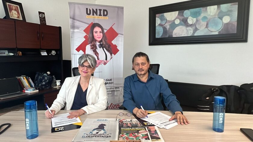 CANCÚN.- En días recientes, El Despertador de Quintana Roo y la Universidad Interamericana para el Desarrollo (UNID) campus Cancún firmaron un convenio de colaboración que permitirá a los estudiantes de las diversas carreras impartidas en esa institución realizar sus prácticas laborales. El objetivo es que los alumnos puedan ampliar, aplicar y consolidar los conocimientos y habilidades adquiridos durante su formación académica.