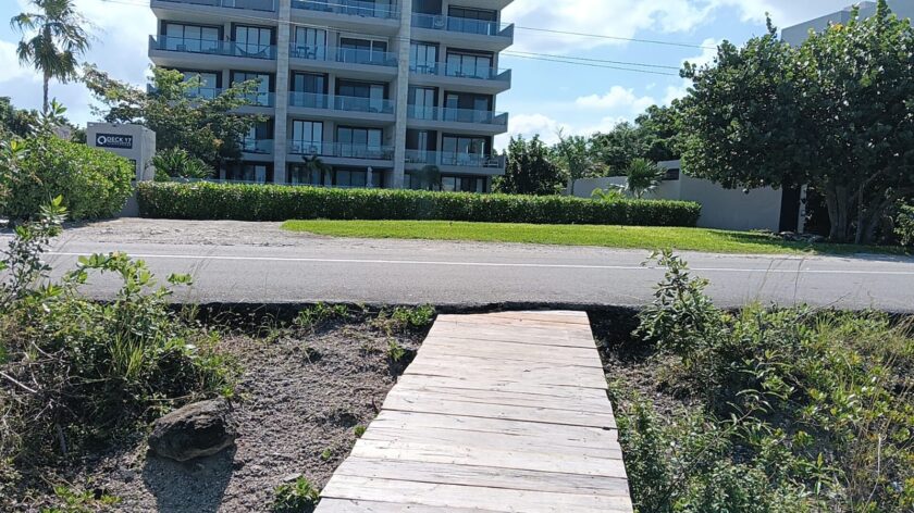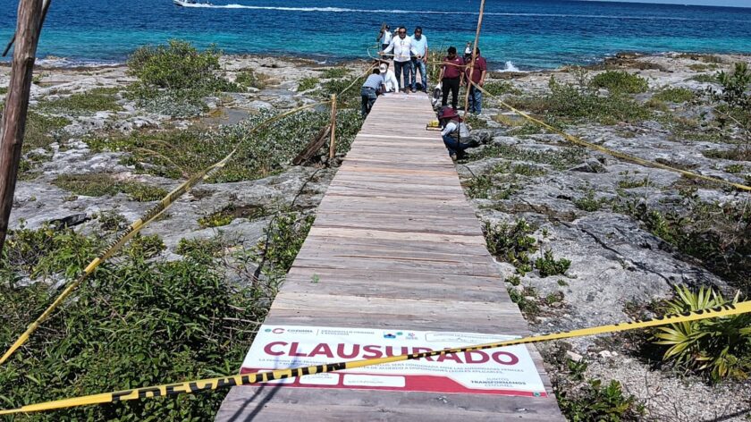COZUMEL.– Autoridades municipales de Desarrollo Urbano y Ecología clausuraron este jueves la construcción de un muelle en la carretera Costera Sur Antigua, aproximadamente en el kilómetro 10, debido a que carecía de permisos oficiales y generaba daño ambiental.
