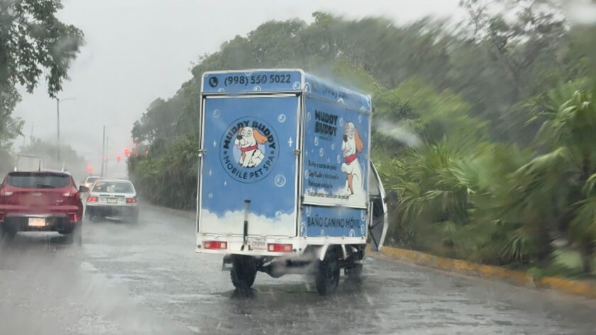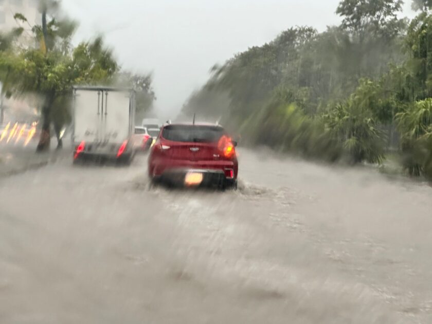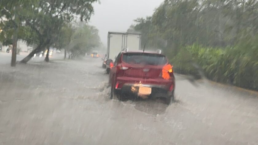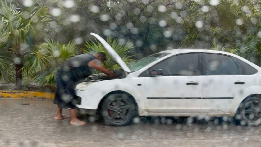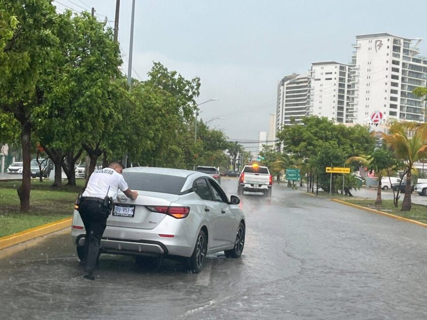 CANCÚN.- Las fuertes lluvias provocadas por la influencia de la Onda Tropical Número 33 y una canal de baja presión ubicadas sobre la Península de Yucatán dejaron inundaciones y autos varados en diferentes puntos de Cancún.