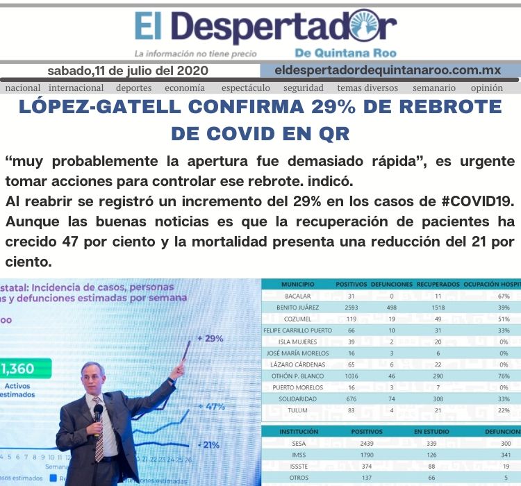 López-Gatell confirma 29% de rebrote de COVID en QR.