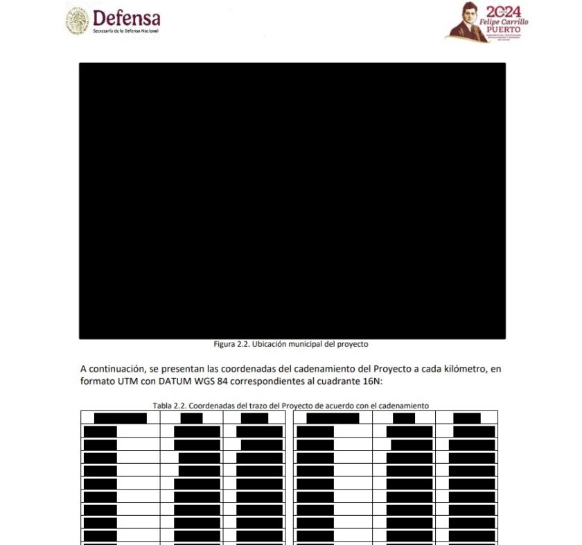 FELIPE CARRILLO PUERTO.– Mientras la Unesco reprueba que la obra del camino artesanal Puerta al Mar avance sin permisos ambientales y sin información pública en la Biosfera de Sian Ka’an, la Secretaría de Medio Ambiente y Recursos Naturales (Semarnat) publicó recientemente la Manifestación de Impacto Ambiental (MIA) del proyecto, presentada por la Secretaría de la Defensa Nacional (Sedena). Sin embargo, el documento fue difundido con censura de información sensible, como imágenes, mapas, croquis y ubicación exacta de las zonas afectadas, lo que limita la comprensión del impacto ambiental.