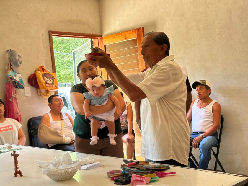 Destacó que el Jéets’ Méek’ es una tradición importante en la cultura maya, pues simboliza la conexión del niño con su comunidad y su futuro. La ceremonia refleja el sincretismo cultural, al combinar elementos mayas con creencias católicas, y transmite valores esenciales para el desarrollo del niño.