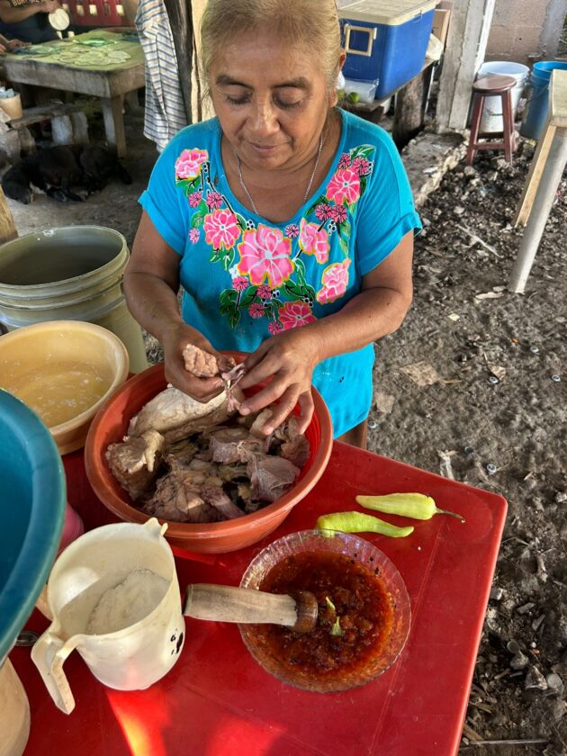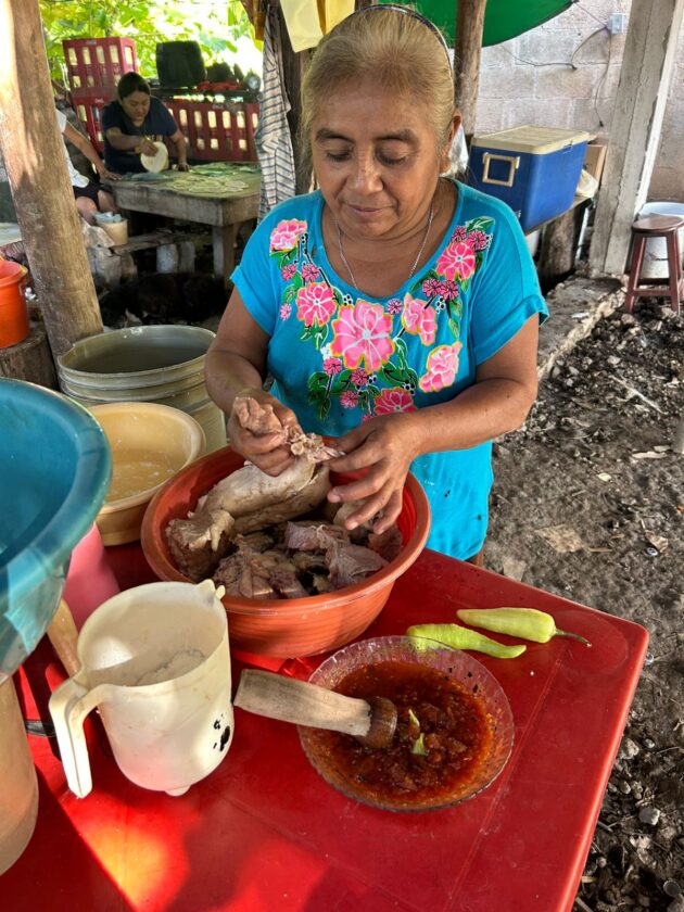 Detalló que el proceso tradicional de preparación del tamal se mantiene sin cambios en las comunidades rurales, desde la nixtamalización del maíz hasta su cocción en el pib, con ingredientes como repollo, recados, carne deshebrada y hojas de plátano. Indicó que cada cocinera tiene su toque particular, y algunas utilizan elote nuevo para darle un sabor más fresco.