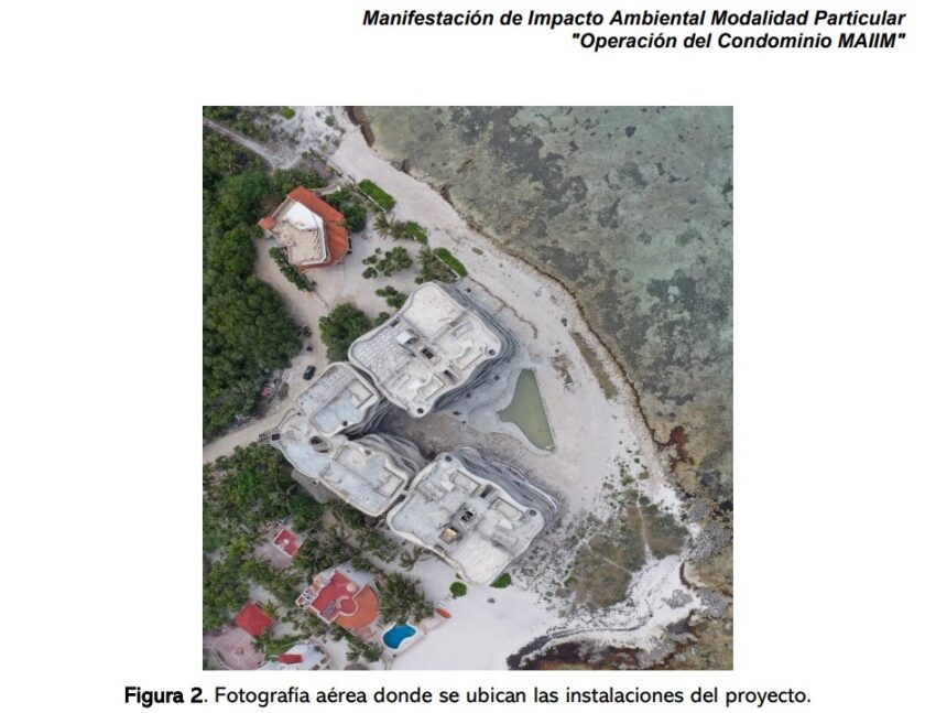 Por su parte, el proyecto Maiim, promovido por Promotora de Incentivos México, S.A. de C.V., contempla 38 departamentos distribuidos en tres edificios dentro de una superficie de 3,144.28 metros cuadrados, colindante con la Zona Federal Marítimo Terrestre (Zofemat), en el mismo predio Tankah IV.