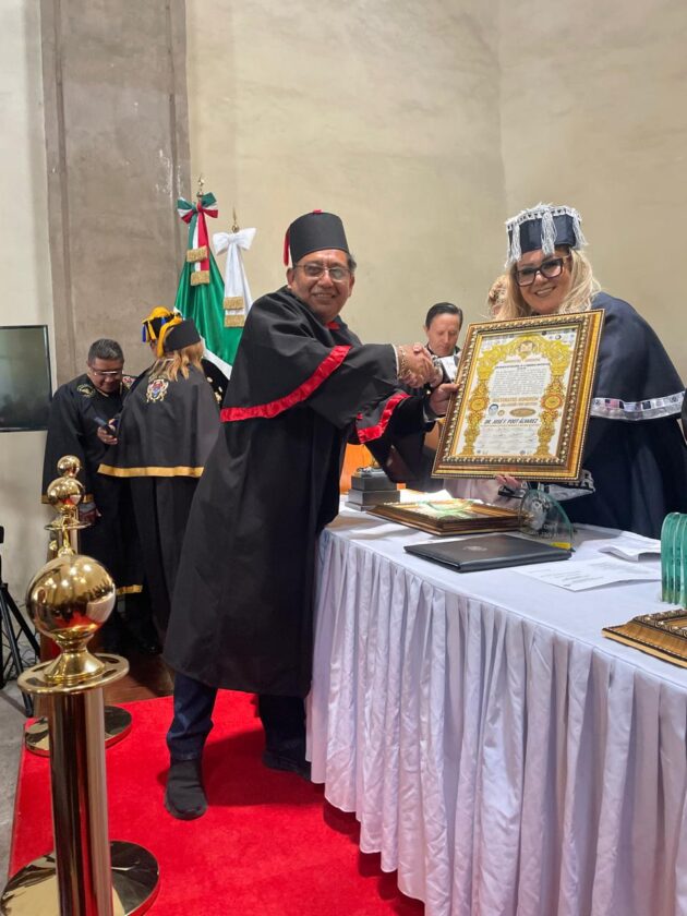 KANTUNILKÍN.– José Feliciano Poot Álvarez, director de la secundaria número 40 en Playa del Carmen y residente de Kantunilkín desde hace más de 20 años, fue distinguido con el doctorado Honoris Causa en un acto celebrado en la alcaldía Cuauhtémoc de la Ciudad de México.