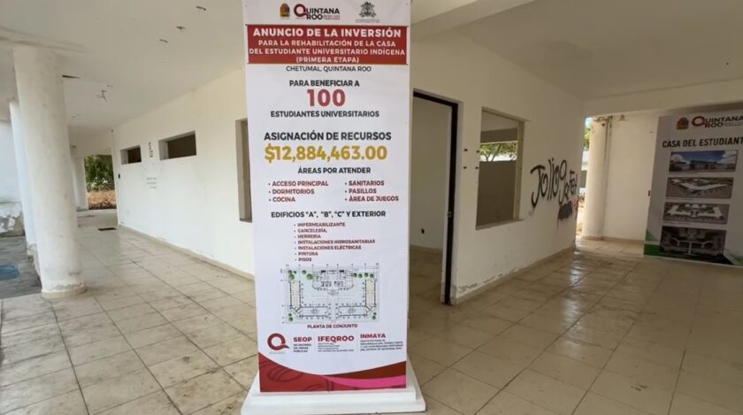 CHETUMAL.- La gobernadora Mara Lezama anunció que su administración invertirá más de 12 millones de pesos en la rehabilitación de la Casa del Estudiante Universitario Indígena “Ya’axche” de la Universidad Autónoma de Quintana Roo (Uaqroo), inmueble que nunca ha sido utilizado y se encuentra en estado de deterioro y vandalizado.