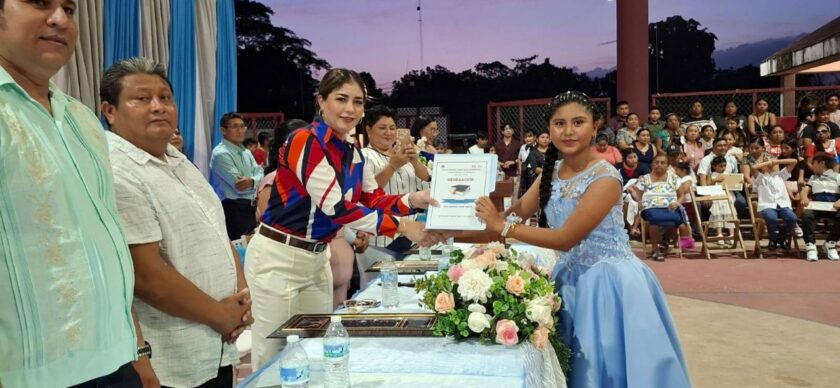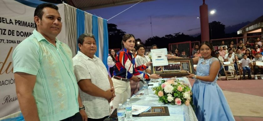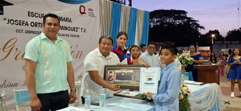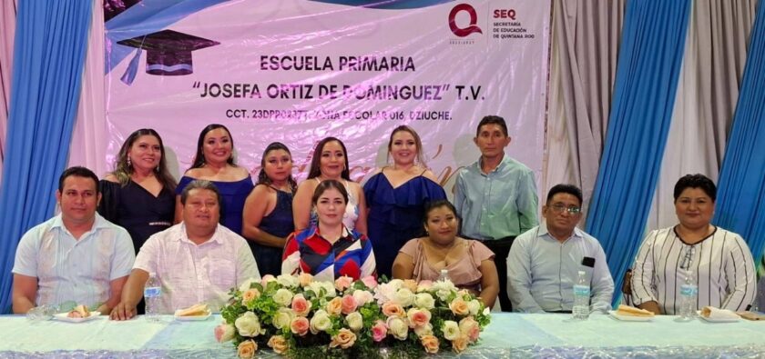 DZIUCHÉ, Q. ROO.- La Escuela Primaria Josefa Ortiz de Domínguez, ubicada en la alcaldía de Dziuché, celebró la ceremonia de graduación de la Generación 2019-2025, cuya madrina fue la empresaria Rossana Romero Ávila.