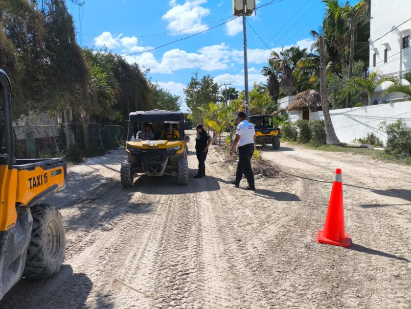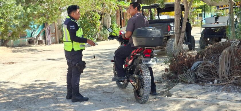 HOLBOX.- Con el propósito de reforzar la seguridad vial, personal de Tránsito Municipal realizó recorridos de supervisión en la isla de Holbox para verificar el cumplimiento de las normas de circulación, informó el director del área, Silverio Maglah Pat.