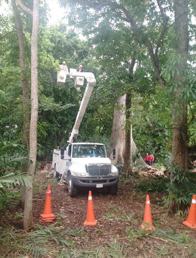 Una vecina, que prefirió omitir su nombre, explicó que un día antes llegó una grúa de la Comisión Federal de Electricidad (CFE) de 12 metros, insuficiente para la altura del árbol. Añadió que personal de Protección Civil acudió al lugar, pero la intervención no fue suficiente para garantizar la seguridad.